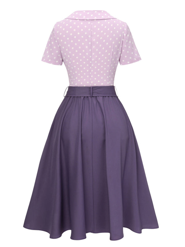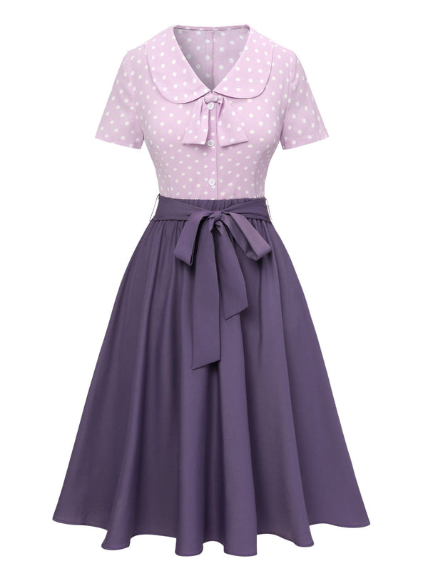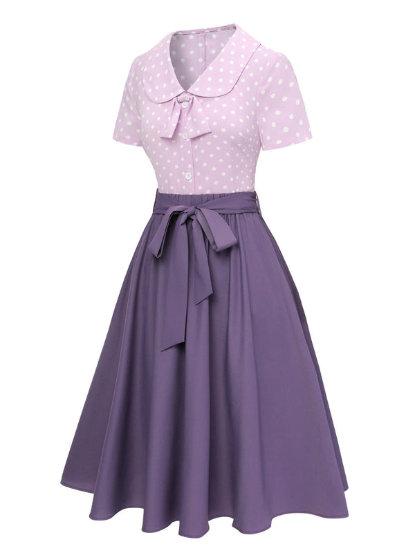 2PCS chemisier à pois lavande des années 40 et jupe unie – Retro Stage-France
