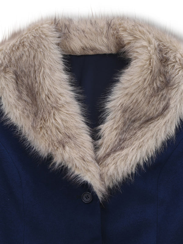[Prévente] Manteau bleue doublé de fausse fourrure et ceinturé années 1960