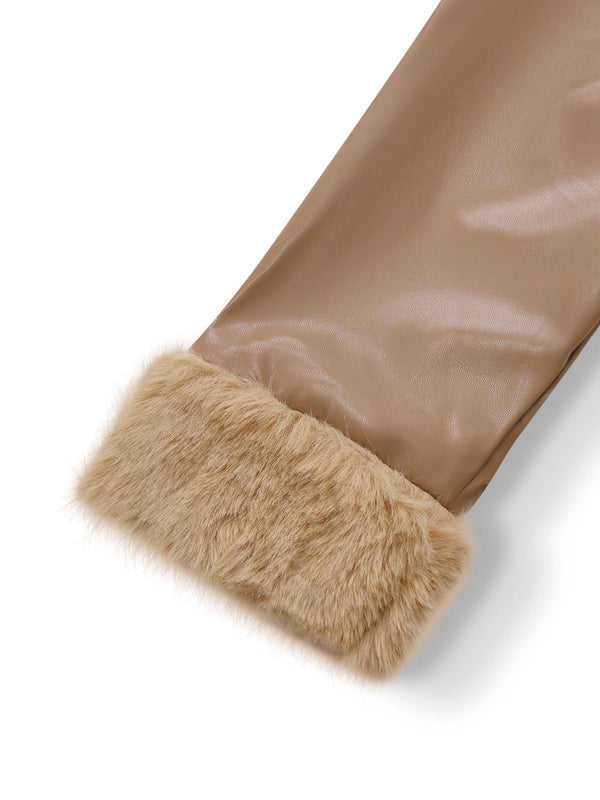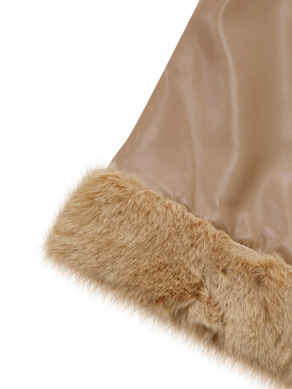 Manteau kaki en similicuir et fausse fourrure avec ceinture des années – Retro Stage-France