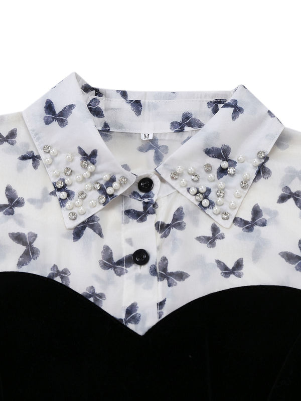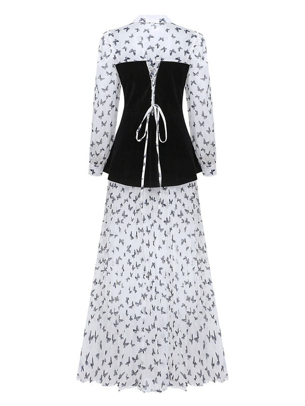 Robe mi-longue blanche à corset en velours plissé et perles papillon d – Retro Stage-France