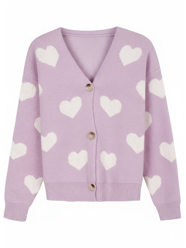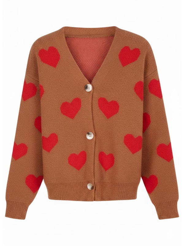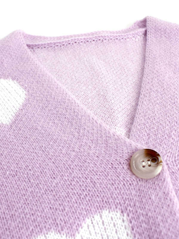 Cardigan en maille à imprimé cœur style Saint-Valentin années 1950 – Retro Stage-France