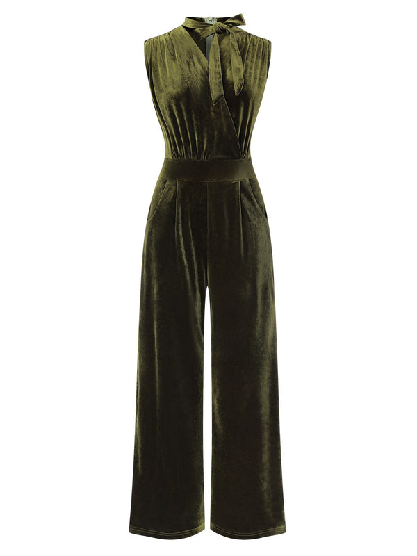 Combinaison en velours vert à col noué des années 40 – Retro Stage-France