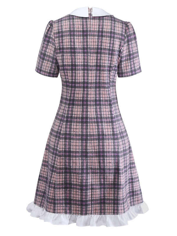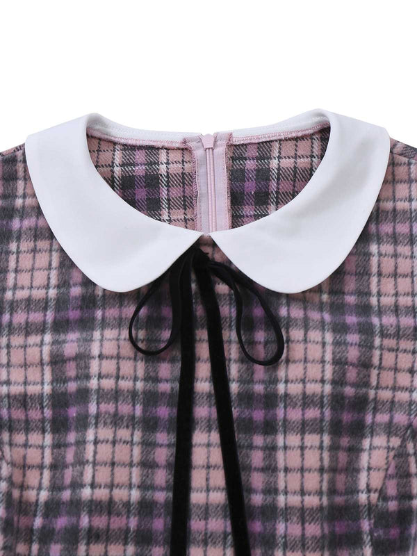 [Prévente] Robe rose à carreaux col Claudine ourlet à volants style années 60