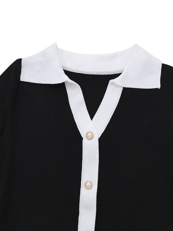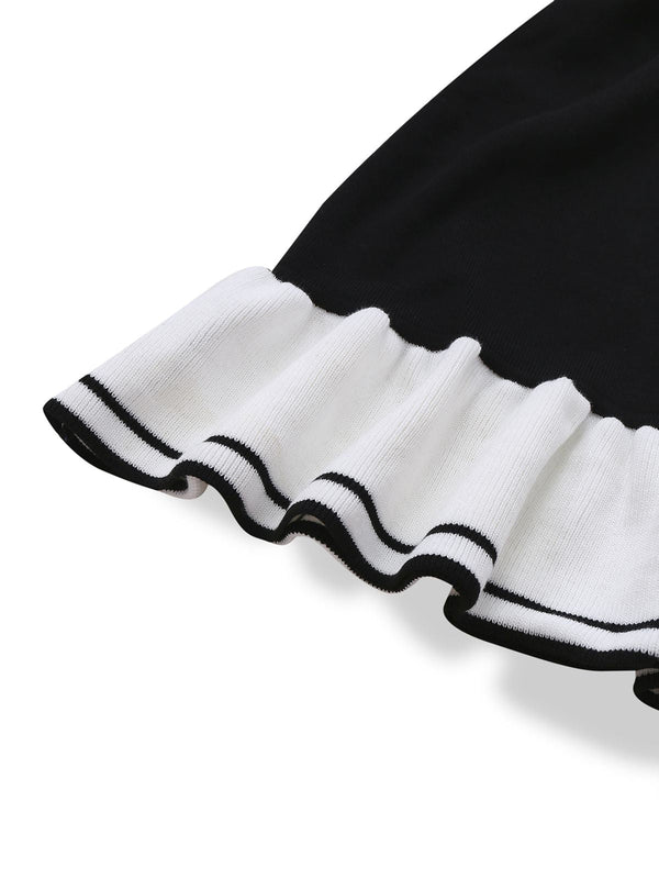 Robe noir et blanc à volants en tricot contrasté années 1970 – Retro Stage-France