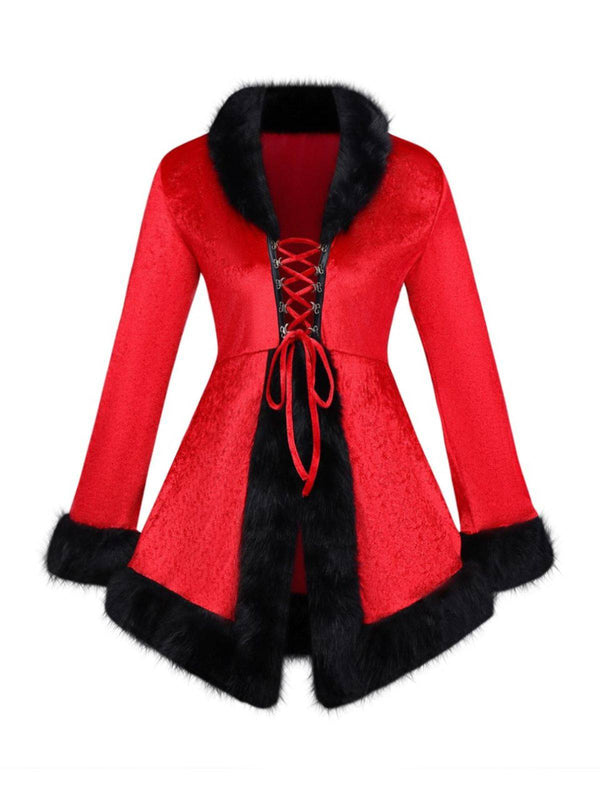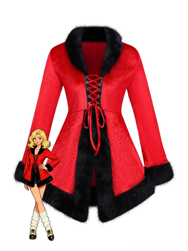 Veste de Noël en velours à lacets et bordure en fourrure rouge des ann – Retro Stage-France