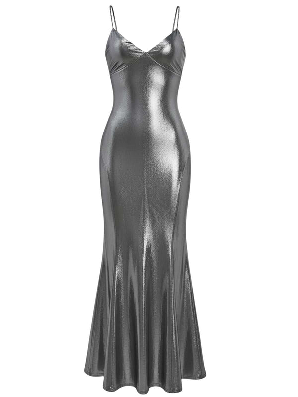 Robe sirène argentée fines bretelles années 1930 – Retro Stage-France