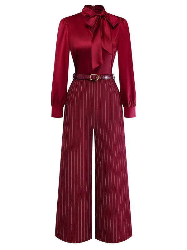 [Prévente] Combinaison en satin et rayée bordeaux col à nœud des année – Retro Stage-France