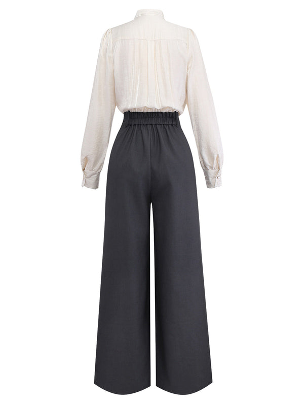 [Prévente] Combinaison beige patchwork col nœud et bordures perlées années 50