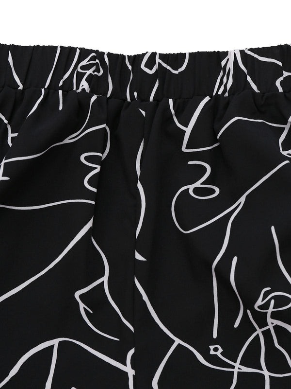 Débardeur tricoté col en U et pantalon imprimés abstraits noir des ann – Retro Stage-France